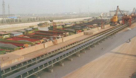 | 一:產(chǎn)品應(yīng)用范圍 廣泛應(yīng)用于冶金、煤炭、水電、機(jī)電、化工、交通等部門,輸送散狀物料或成件物品。根據(jù)輸送線路要求,可以單獨(dú)一臺,也可以多臺或與其它輸送機(jī)組成系統(tǒng)作水平或傾斜輸送。 輸送機(jī)一般環(huán)境溫度+45℃到-10℃范圍內(nèi)作用,對于有防塵、防爆、防腐蝕要求的場合需要輸送帶可逆運(yùn)行輸送時(shí),應(yīng)另采取措施。 二、技術(shù)特征和主要參數(shù): 本機(jī)可輸送堆積比重1.0-2.5噸/米3的各種散狀物品,本廠生產(chǎn)帶寬500、650、880、1000等規(guī)格,傳動(dòng)功率從1.5KW到185KW。帶速有0.8、1.0、1.25、1.65、2、0米/秒五種。大輸送量見下表。 三、結(jié)構(gòu)概述: 總機(jī)布置基本情況如附圖。主要結(jié)構(gòu)有: 1、驅(qū)動(dòng)部分。系由裝置在型鋼焊成的底座上的電動(dòng)機(jī)→高速聯(lián)軸器→減速器→減速聯(lián)軸組成。根據(jù)布置要求:驅(qū)動(dòng)裝置設(shè)有左裝和右裝二種,另外,本廠配有功率1.5KW到185KW,速度0.80、1.0、1.25的油冷式電動(dòng)滾筒。 2、滾動(dòng)部分:分傳動(dòng)滾筒和改向滾筒兩大類。 3、托輥部分:分槽形、平形、調(diào)心和緩沖托輥等。 4、清掃部分:分彈簧清掃器和空段清掃器 5、卸料部分:分固定犁式和卸料器和電動(dòng)卸料車。 6、制動(dòng)部分:有帶式逆止器和滾柱逆止器兩種。 7、附件:有罩殼、導(dǎo)料槽、漏斗等。